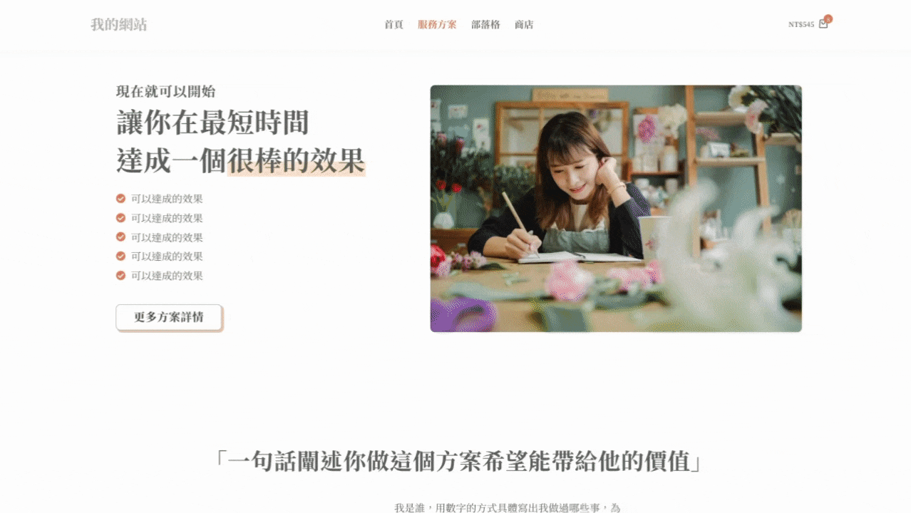為你準備各種網頁應用在你的事業上,你的品牌故事、你的作品集、你的產品服務、線上課程等,讓人一看就是專業的品牌形象。